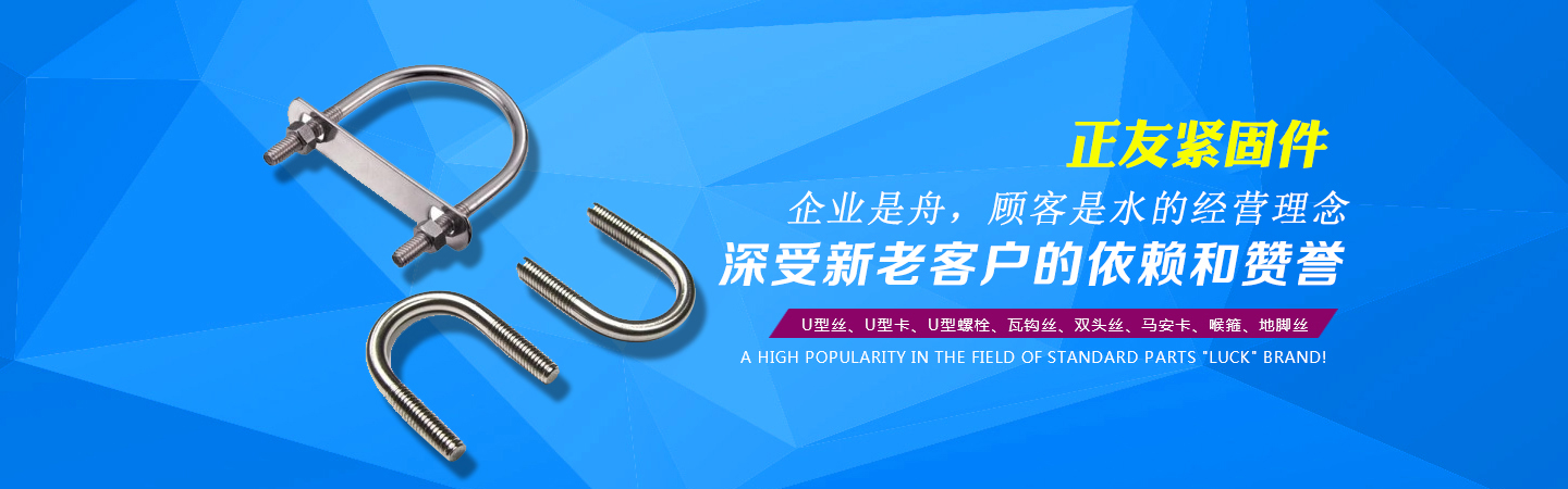 河北正友緊固件制造有限公司(原永年縣河北鋪天緣緊固件廠)坐落在永年縣河北鋪工業(yè)區(qū),地理位置優(yōu)越,交通便利。自1994年建廠至今,在各界人士的關(guān)懷和新老客戶的擁護(hù)及全廠員工的努力下,企業(yè)日益發(fā)展壯大,產(chǎn)品不斷更新,以U型絲、U型卡、U型螺栓、瓦鉤絲、雙頭絲、馬安卡、喉箍、地腳絲等產(chǎn)品的過硬質(zhì)量,創(chuàng)下在標(biāo)準(zhǔn)件領(lǐng)域知名度較高的“正友”品牌! 為答謝新老客戶長期以來對我廠的幫助與信任,我廠在提高質(zhì)量的同時,更是加強(qiáng)了產(chǎn)品售后服務(wù)的力度!以“企業(yè)是舟,顧客是水”的經(jīng)營理念,鑄就“正友”日后的輝煌之路!
